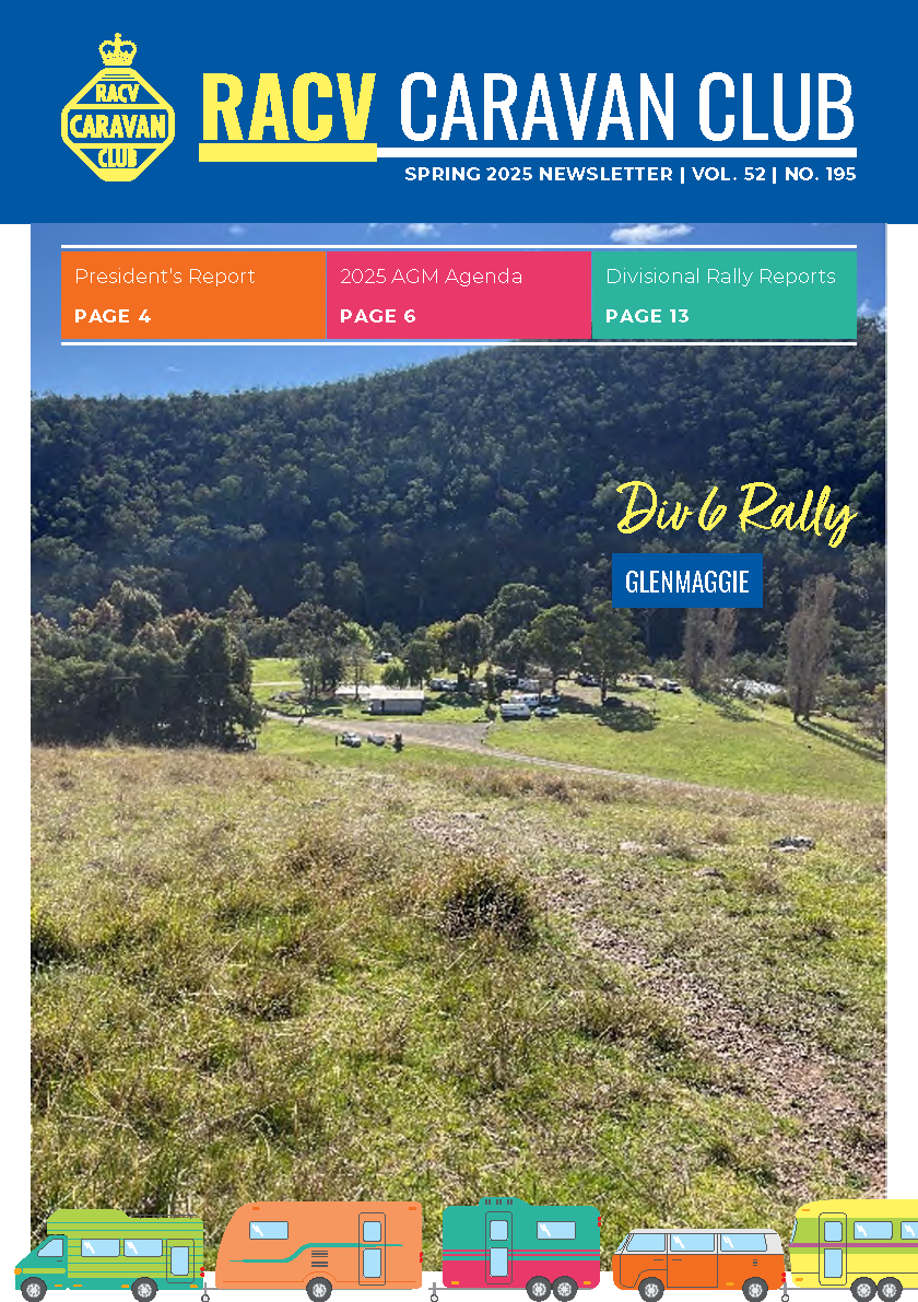 We rally each month at a different location within Victoria. The 6 divisions usually go in 6 separate directions and whilst most members prefer to attend their own divisional rally, all are free to visit any other division. It just means a phone call to the Secretary of that Division to make sure there are sites available. Periodically we hold a combined rally for all of the divisions.